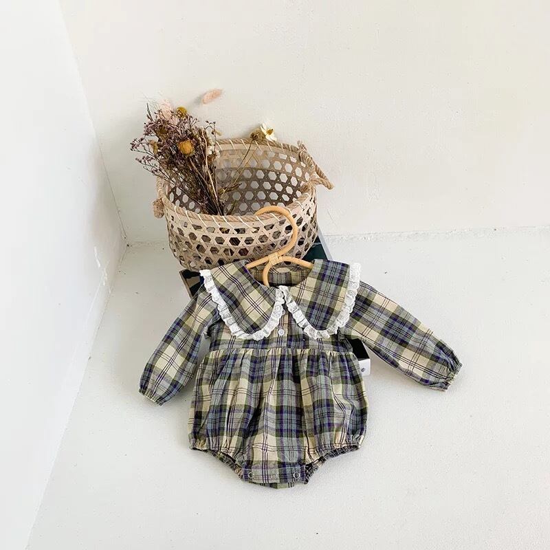 フリルチェックロンパース